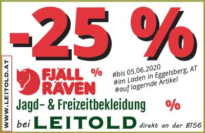 Bei uns im Fjällräven-Laden in Eggelsberg (AT, direkt an der B156) gibt es daher von 26. Mai bis 5. Juni 2020 - 25 % auf alle lagernden Artikel!