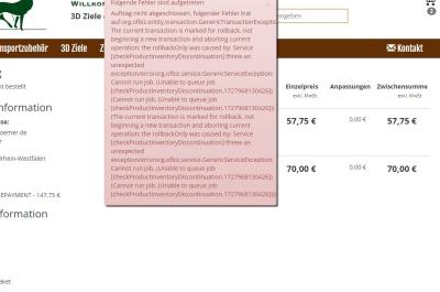 leider haben wir seit ca. 2 Tagen ein technisches Problem betreffend Bestellabschluss in unserem Onlineshop. Es erscheint eine Fehlermeldung und die Bestellung geht nicht durch.